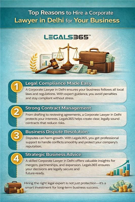 A skilled Corporate Lawyer in Delhi offers valuable insights for mergers, partnerships, and expansion. Legals365 ensures your decisions are legally secure and future-ready.